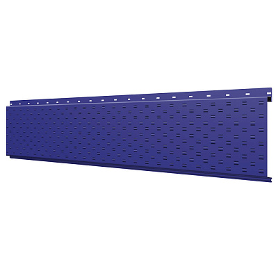 Линеарная потолочно-стеновая панель с ПЕРФОРАЦИЕЙ для вентиляции цвет RAL5002 Синий Ультрамарин применяется в качестве софитов для подшивы крыши, наружной и внутренней отделки потолков, стен, фронтонов фасада дома в Екатеринбурге.